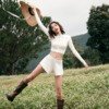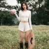 Quần: Quần short thun xoè nhẹ, tinh tế với chi tiết hoa nhỏ ở trung tâm – mang lại vẻ đẹp thuần khiết, thanh thoát, làm dịu dàng hơn từng bước chuyển động.